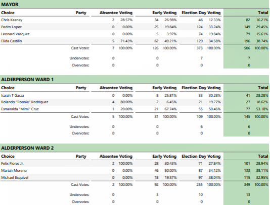 Elections for the Mayor and Alderpersons are held every year for two-year terms. In odd-numbered years, an election for the Mayor and Alderperson for Ward 1 and Ward 2 is held, and in even-numbered years, an election for Alderperson Ward 1 and Ward 2 is held.